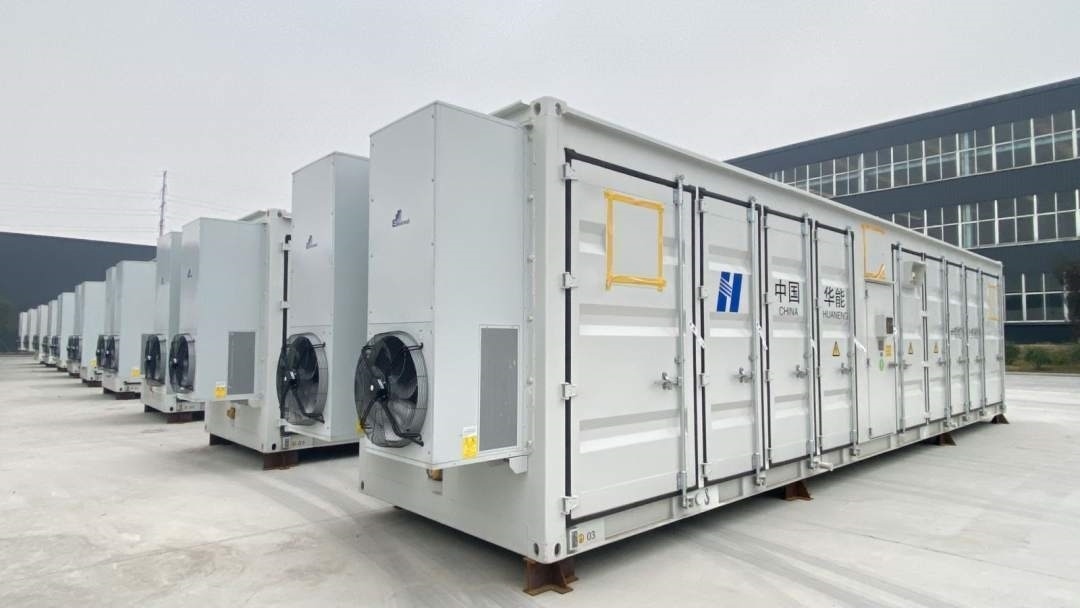 齊魯儲能谷零碳智慧產(chǎn)業(yè)園的儲能車間外擺放整齊的儲能集裝箱