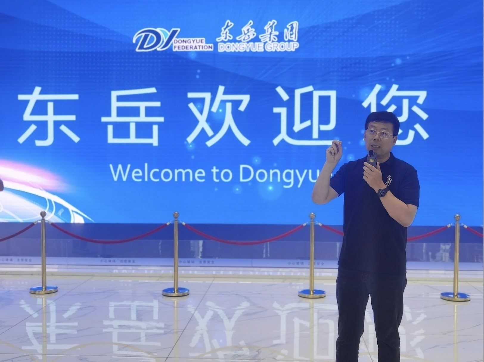 “高質(zhì)量發(fā)展調(diào)研行”采訪團來到位于山東淄博市的山東東岳氟硅科技集團調(diào)研,集團副總裁李玉文在做講解
