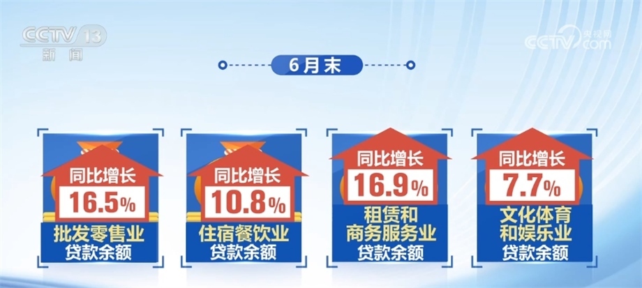 數(shù)據(jù)顯示,6月末,批發(fā)零售業(yè)、住宿餐飲業(yè)、租賃和商務(wù)服務(wù)業(yè)、文化體育和娛樂(lè)業(yè)貸款余額同比分別增長(zhǎng)16.5%、10.8%、16.9%、7.7%,信用卡、汽車(chē)和其他綜合消費(fèi)貸款比年初增加7100多億元,有力支持了相關(guān)領(lǐng)域消費(fèi)恢復(fù)發(fā)展。