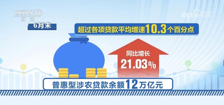 上半年,涉農(nóng)貸款余額也保持較快增長。6月末,全國涉農(nóng)貸款余額54.64萬億元,同比增長16.0%。其中,普惠型涉農(nóng)貸款余額12萬億元,同比增長21.03%,超過各項(xiàng)貸款平均增速10.3個百分點(diǎn)。