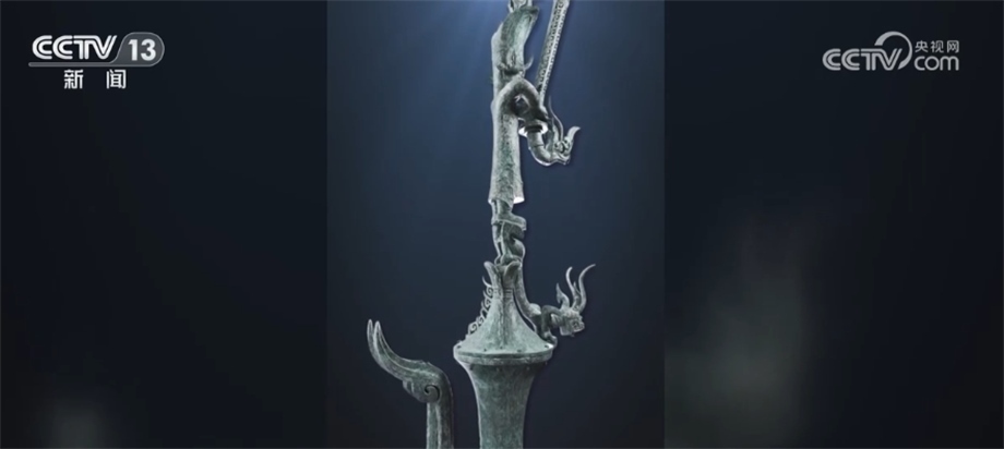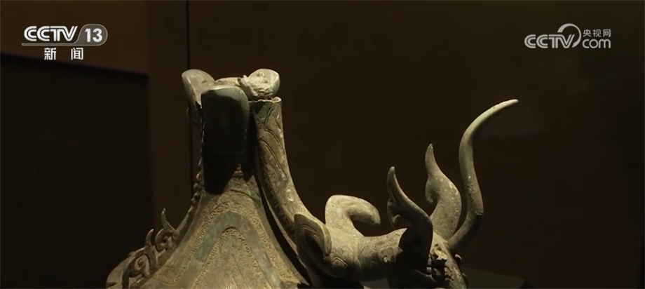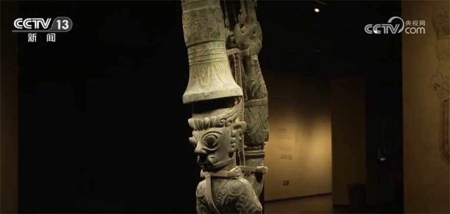 北京大學(xué)考古文博學(xué)院副教授 趙昊:為什么我們不直接把這件器蓋放在這個尊之上,或者包括那個持龍人像放在器蓋之上,這涉及到一個文物安全的問題。因?yàn)橄鄬碚f這些器物本體已經(jīng)有一些變形,第二就是它長期埋在地下,本體已經(jīng)變得比較疏松了,如果我們將它原來整體復(fù)原蓋在一起,重量會很大,可能對于下面的支撐壓迫比較重。