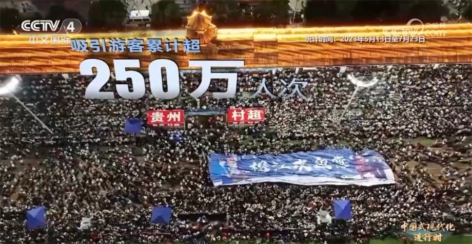 據(jù)統(tǒng)計,自今年5月“村超”開賽至7月上旬,榕江縣累計吸引游客超250萬人次,實現(xiàn)旅游綜合收入28.39億元?!按宄辈粌H展現(xiàn)了當代中國農(nóng)民豐富的精神文化生活,更助推了鄉(xiāng)村振興。