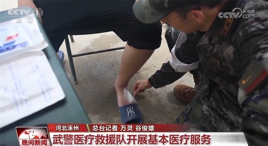 8月3日開始,武警河北總隊醫(yī)院緊急抽調(diào)了22名官兵組成救援醫(yī)療隊,前往涿州受災點,在當?shù)卮罱ㄡt(yī)療帳篷,接診病患、分發(fā)藥品,并開展衛(wèi)生防疫宣傳等工作。