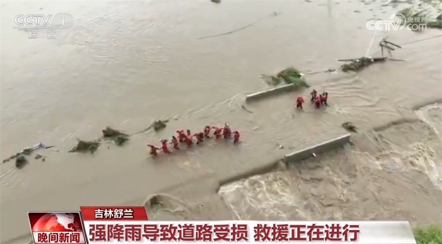 吉林省此輪最大降水量出現(xiàn)在舒蘭市永勝林場(chǎng),達(dá)到489毫米。強(qiáng)降雨導(dǎo)致舒蘭多地出現(xiàn)險(xiǎn)情,通往村屯的道路被損毀,救援人員進(jìn)入村屯展開救援。