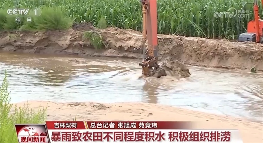 強(qiáng)降雨還導(dǎo)致吉林省梨樹縣多個(gè)鄉(xiāng)鎮(zhèn)的農(nóng)田出現(xiàn)不同程度積水,當(dāng)?shù)匾呀M織各村對(duì)積水程度較輕的農(nóng)田挖溝排水,對(duì)積水程度較重、地勢(shì)較低的農(nóng)田,采取機(jī)械強(qiáng)排等措施搶排積水。