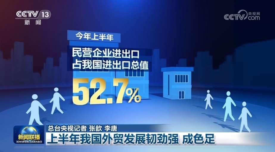 央視網(wǎng)消息(新聞聯(lián)播):今年上半年,在出口面臨較大外需壓力的背景下,我國(guó)外貿(mào)頂住了壓力,穩(wěn)住了規(guī)模,提升了質(zhì)量,呈現(xiàn)出韌性和新成色。