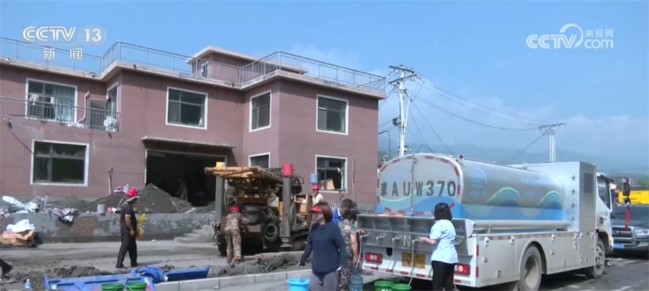在北京市房山區(qū)西班各莊村,由于洪水侵襲,當?shù)厮淳粵_毀,230戶村民出現(xiàn)飲水困難。當?shù)厮块T立即派出應急送水車,同時集結勘探隊、機械設備,用最快的速度更新水源。?
