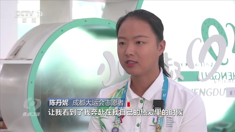 成都大運(yùn)會(huì)志愿者陳丹妮:“我一定要回來(lái),一定要把這件事情做完,而且把這件事情做好。我覺(jué)得成都大運(yùn)會(huì)是我跟成都很深的情感上,包括精神上的一個(gè)聯(lián)結(jié),它已經(jīng)成為我青春記憶中非常重要的一個(gè)環(huán)節(jié),所以我完全沒(méi)有想過(guò)我有一天要放棄它。”