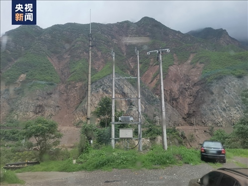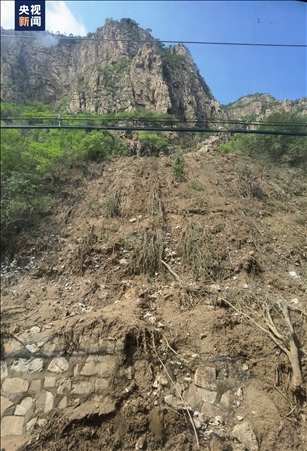 △西南側(cè)山體滑坡后,中間是石頭,兩側(cè)的土已經(jīng)被沖垮,植被已經(jīng)不見(jiàn)。