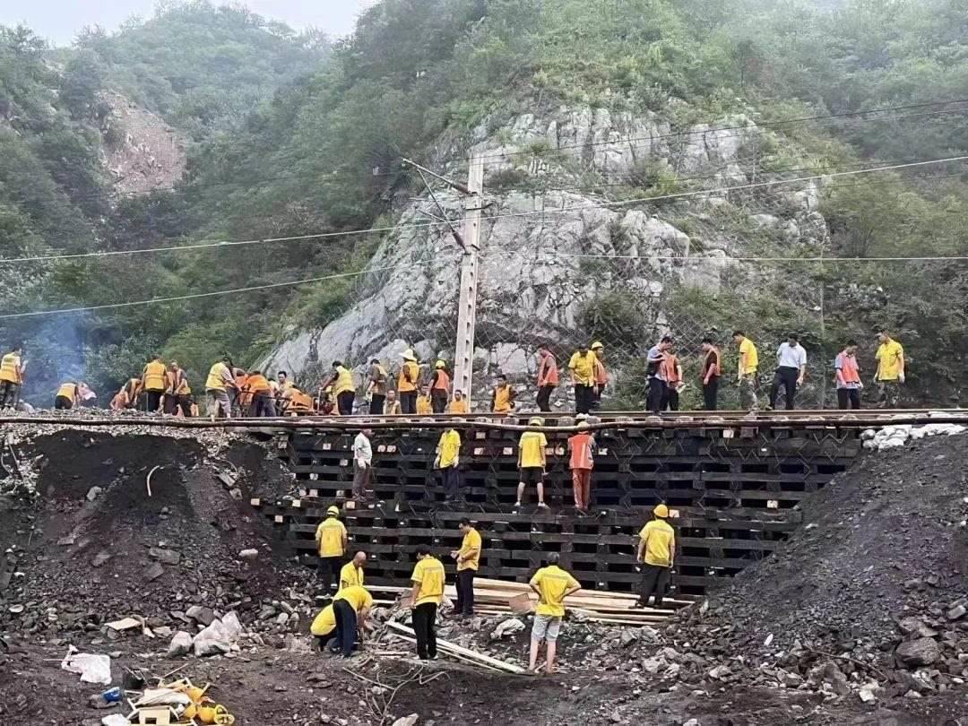 救援物資專(zhuān)列一邊清理線(xiàn)路