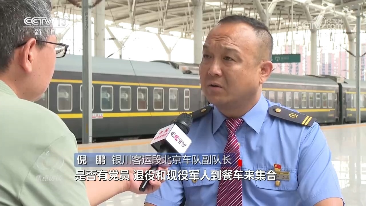 銀川客運(yùn)段北京車隊(duì)副隊(duì)長倪鵬:“20時(shí)左右,我們通過廣播召集車廂里面的旅客,是否有黨員、退役和現(xiàn)役軍人,到餐車來集合,目的是發(fā)揮黨組織作用,讓大家共同攻堅(jiān)克難,做好旅客的安撫工作。”