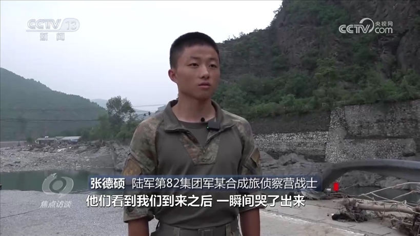 陸軍第82集團(tuán)軍某合成旅偵察營(yíng)戰(zhàn)士張德碩:“我們進(jìn)到屋里之后,看到她姥姥和她躺在床上,她們看到我們到來之后,一瞬間哭了出來?!?/p>