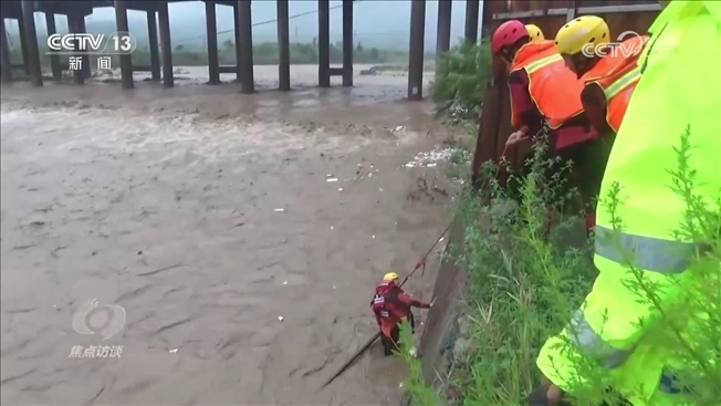 河北武安市南環(huán)東路消防救援站消防員趙亞朋:“水流太快了,直接把身體沖得控制不住。當(dāng)時(shí)下水前后一共嘗試了五次,第五次,走到十米的時(shí)候,洪水量突然加大,把車輛向下游沖去?!?/p>