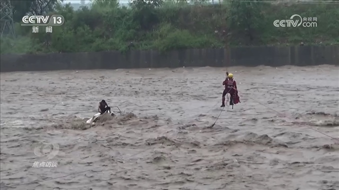 河北武安市南環(huán)東路消防救援站政治指導(dǎo)員田明:“救援人員到達(dá)現(xiàn)場(chǎng)以后,發(fā)現(xiàn)現(xiàn)場(chǎng)情況十分危急,首先是被困車輛和人員處于河道正中央,距兩岸均有50余米,二是水流十分湍急,而且水中雜物很多,嚴(yán)重影響施救?!?/p>