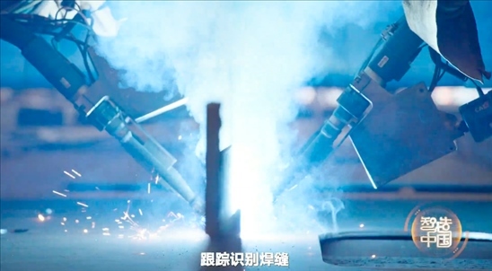 機器人測量鋼板尺寸和位置,大腦根據(jù)數(shù)據(jù)迅速發(fā)出指令,焊槍上的激光感應器跟蹤識別焊縫,實時糾偏。