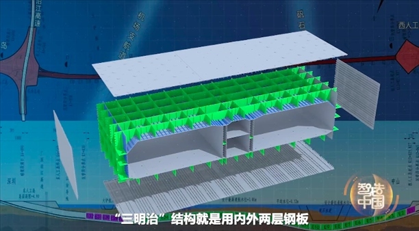 顧名思義,“三明治”結構就是用內外兩層鋼板造出巨型鋼殼,然后在兩層鋼板的隔艙之間進行混凝土澆筑。
