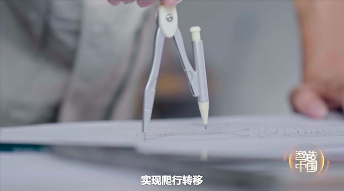 研發(fā)團隊一籌莫展的時候,一位工程師用圓規(guī)畫圖,猛然受到啟發(fā)。就像圓規(guī)一樣,他們也讓大型機械臂的兩只手當“腳”,互為支點,交替切換向前移動,實現(xiàn)爬行轉移。