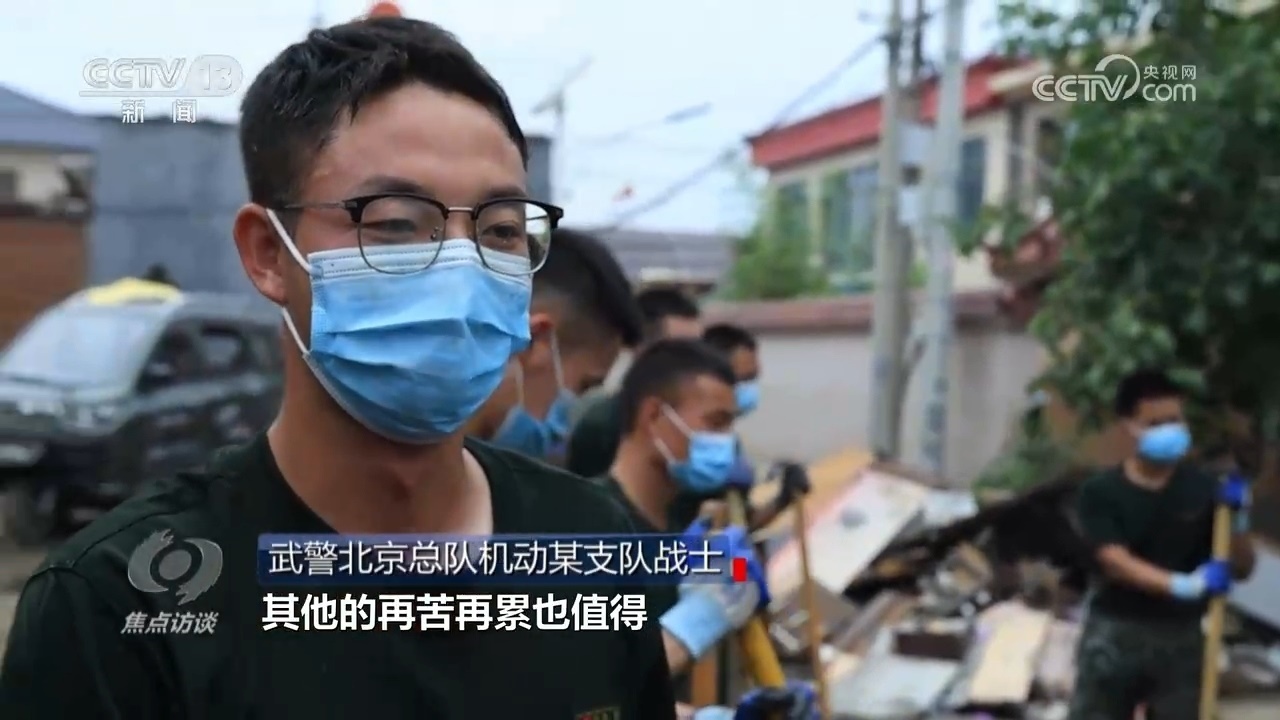 從7月31日接到命令以來(lái),武警北京總隊(duì)機(jī)動(dòng)某支隊(duì)就派出1450人奮戰(zhàn)在一線,前期參與救援,現(xiàn)在是災(zāi)后清淤,每天都要工作十小時(shí)以上。