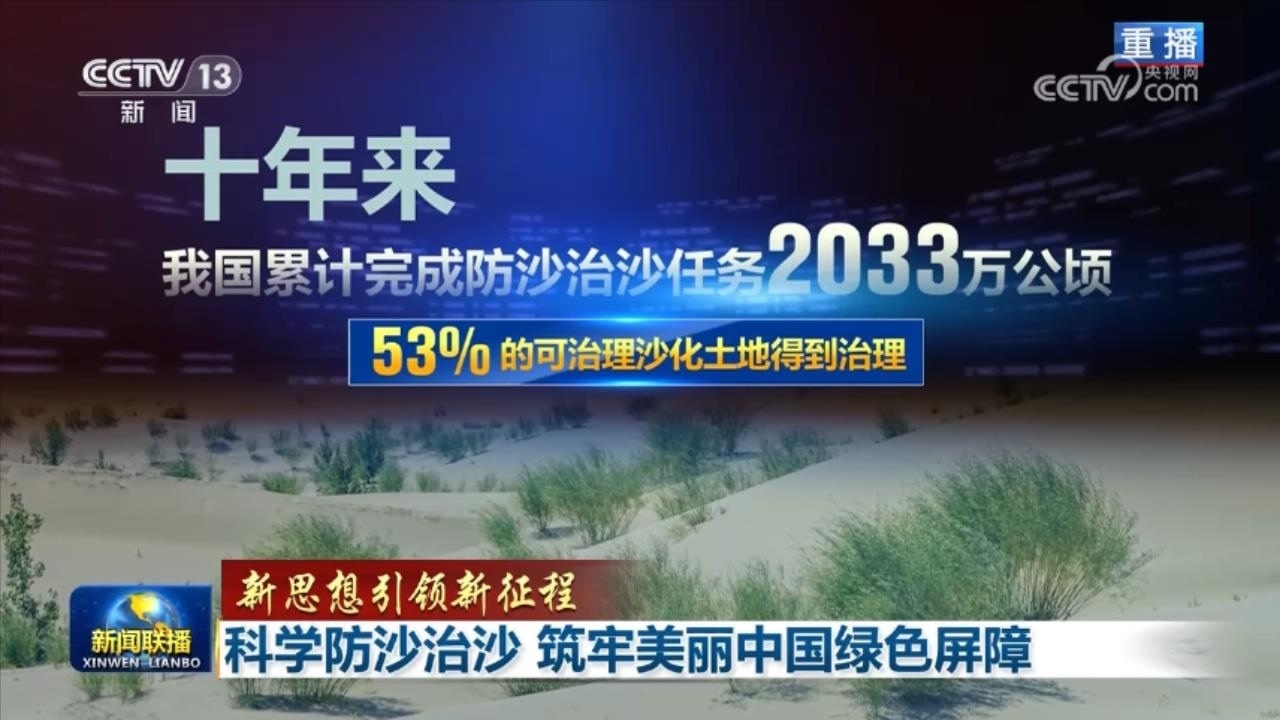 央視網(wǎng)消息(新聞聯(lián)播):習近平總書記強調,加強荒漠化綜合防治,深入推進“三北”等重點生態(tài)工程建設,事關我國生態(tài)安全、事關強國建設、事關中華民族永續(xù)發(fā)展,是一項功在當代、利在千秋的崇高事業(yè)。黨的十八大以來,我國多措并舉推進荒漠化治理,防沙治沙取得巨大成就,進一步筑牢美麗中國綠色屏障。