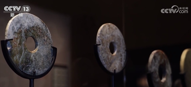 總臺記者 朱睿祺:繼續(xù)往里走,就可以看到以玉器為專題的展廳“玉魂國魄”。良渚先民圍繞對神的崇拜,設(shè)計(jì)出了一套用以區(qū)別階層、標(biāo)識身份、反映等級的玉禮器系統(tǒng)。在這里,大家能找到杭州第19屆亞運(yùn)會吉祥物“琮琮”的原型——玉琮,還有第4屆亞殘運(yùn)會的吉祥物“飛飛”的原型——良渚神鳥。