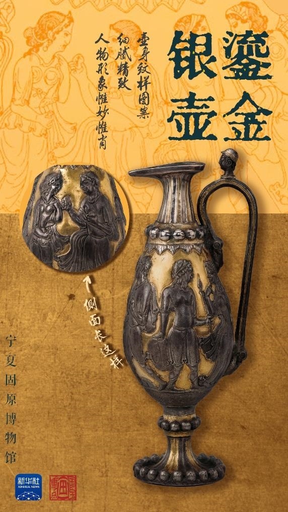 鎏金銀壺有何特殊之處?這件波斯王朝的酒具,是在薩珊時(shí)代的巴克特里亞地區(qū)制造而成,距今已有1500年歷史,壺身上的雕刻以連環(huán)畫(huà)的形式講述了希臘神話故事里的內(nèi)容。“鎏金銀壺整體造型融合了波斯薩珊金銀器風(fēng)格、希臘風(fēng)格和巴克特里亞當(dāng)?shù)卦亍!睂幭墓淘┪镳^副館長(zhǎng)張強(qiáng)介紹,在現(xiàn)階段出土文物中,鎏金銀壺不僅在中國(guó)只此一件,在世界現(xiàn)存的薩珊金銀器中亦屬罕見(jiàn)。