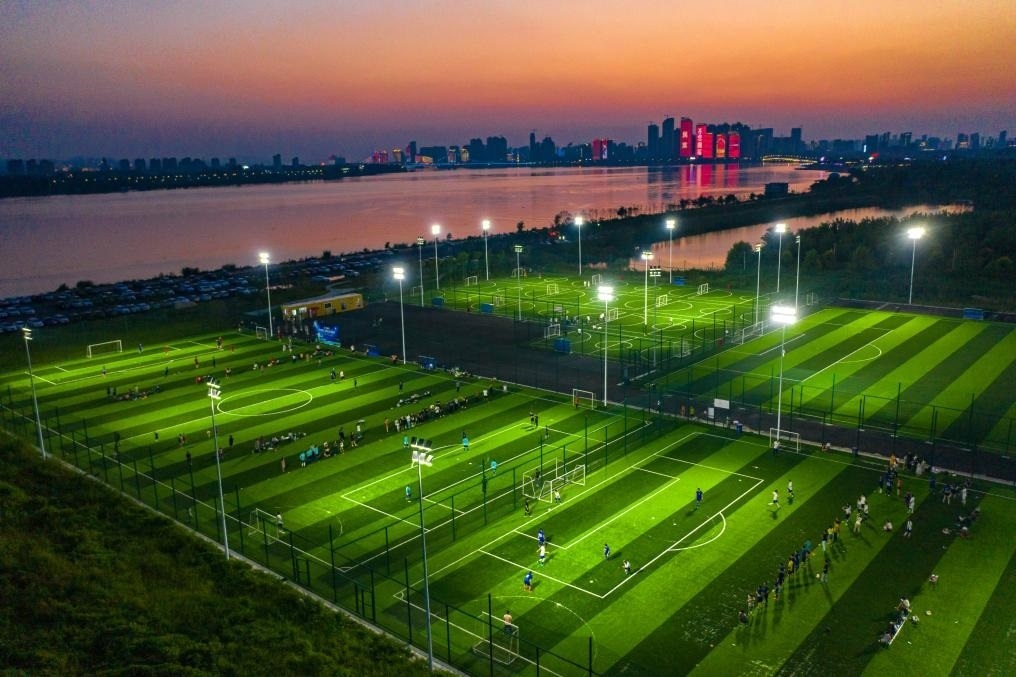 魚梁洲配置了運(yùn)動(dòng)場(chǎng)所供市民健身鍛煉。(楊東 攝)