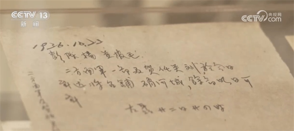 六盤山紅軍長征紀念館館長 李玲:在我們紀念館里也陳列展出了一組非常珍貴的、紅軍長征過程當中的電文,其中有一張就是1936年10月22日,您看在這里,這個日子也是紅一和紅二方面軍在西吉將臺堡勝利會師的日子。