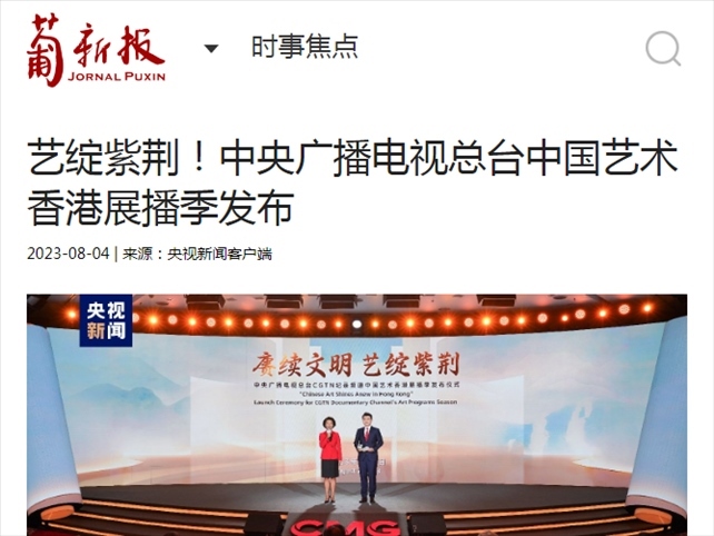 近期,中央廣播電視總臺CGTN紀(jì)錄頻道“賡續(xù)文明 藝綻紫荊”中國藝術(shù)香港展播季在京港兩地共同發(fā)布。30余部展現(xiàn)中華優(yōu)秀傳統(tǒng)文化的總臺紀(jì)錄片、專題片正陸續(xù)通過CGTN紀(jì)錄頻道在香港播出。