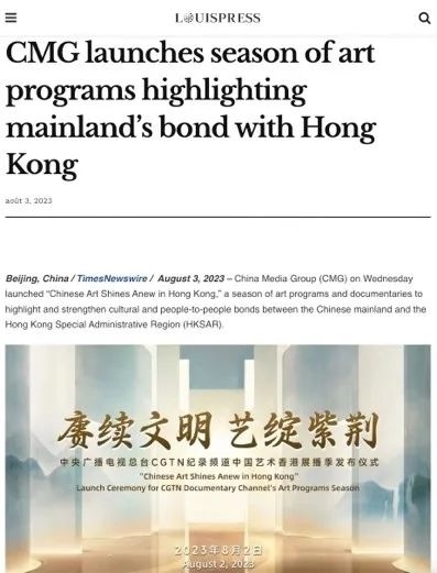 總臺CGTN在官網(wǎng)發(fā)布的《中國藝術(shù)香港展播季 讓觀眾零距離觸摸源遠(yuǎn)流長的中華文明》稿件被來自美國、英國、法國、澳大利亞、韓國、加拿大、意大利等20個國家和地區(qū)的799家海外主流網(wǎng)絡(luò)媒體轉(zhuǎn)載。美國《國際日報(bào)》《歐洲僑報(bào)》《葡新報(bào)》《非洲時報(bào)》《委國僑報(bào)》、新西蘭格局傳媒網(wǎng)站、歐僑網(wǎng)和日本華商網(wǎng)等海外華文媒體也以多種形式刊載轉(zhuǎn)發(fā)了相關(guān)報(bào)道。