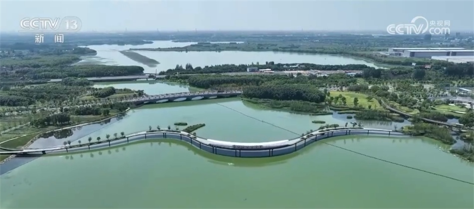 總臺(tái)記者 毛?。?/strong>這里是蘇州吳江和上海青浦交界處的元蕩湖,我所走的這座步行橋總長(zhǎng)585米,這也是遠(yuǎn)近聞名網(wǎng)紅打卡地。除了風(fēng)景美麗之外,還有一個(gè)原因。我現(xiàn)在還是在上海,往前走兩步,走過(guò)這行字,我就到了蘇州,完全沒有兩個(gè)城市之間的陌生感。這座步行景觀橋也是長(zhǎng)三角生態(tài)綠色一體化發(fā)展示范區(qū)建設(shè)的第一座跨省級(jí)行政區(qū)的步道橋。在旁邊,還有連接上海、蘇州兩地的公路橋和滬蘇湖鐵路橋也都建設(shè)好了,城市之間的交流越來(lái)越緊密。