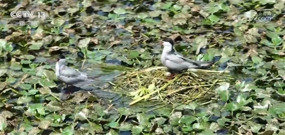 比如,兩地工作人員實(shí)現(xiàn)了聯(lián)合巡河、管護(hù)、治理。元蕩湖生態(tài)岸線的相關(guān)建設(shè),包括我所在的這個(gè)公園和步行橋也是兩地統(tǒng)一審批、接力建設(shè)起來(lái)的。目前,元蕩湖水質(zhì)已經(jīng)達(dá)到國(guó)家考核目標(biāo),生態(tài)岸線占比超過(guò)80%。在湖心的位置有一處水草聚集區(qū)域,船是不會(huì)靠近的,這是人為劃定的水上鳥兒的保育區(qū),能看見不少水鳥在那里嬉戲飛翔。鏡頭拉近,有的鳥兒已經(jīng)在這里筑巢產(chǎn)卵,把家安在了元蕩湖,水質(zhì)好不好,鳥兒最有發(fā)言權(quán)?,F(xiàn)在,元蕩湖在水系連通、河道清障、岸坡整治、水源涵養(yǎng)等方面實(shí)現(xiàn)了統(tǒng)一推進(jìn)。