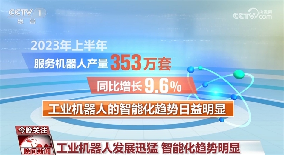 據(jù)了解,我國(guó)工業(yè)機(jī)器人銷量已占全球的一半以上,連續(xù)10年居世界首位。2023年上半年,工業(yè)機(jī)器人產(chǎn)量達(dá)到了22.2萬(wàn)套,同比增長(zhǎng)5.4%,服務(wù)機(jī)器人產(chǎn)量353萬(wàn)套,同比增長(zhǎng)9.6%。同時(shí),工業(yè)機(jī)器人的智能化趨勢(shì)日益明顯。