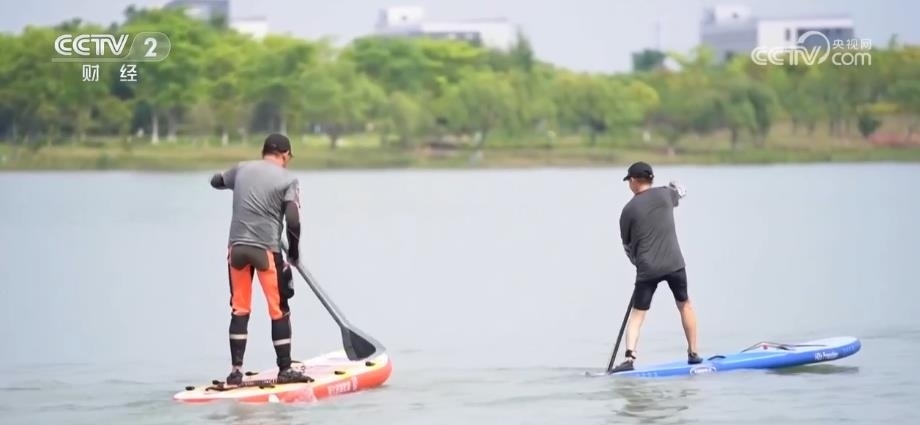 除此之外,不少市民會選擇專門的機構(gòu),體驗更為多樣的水上運動。在浙江臨安的一家水上運動中心,既可以體驗?zāi)ν型Я愕浇俅a的動力加速度,也可以站在槳板上,悠然地穿梭于湖泊之上。運動中心負(fù)責(zé)人告訴記者,目前機構(gòu)包括水上摩托、尾波沖浪、槳板等11個水上項目。
