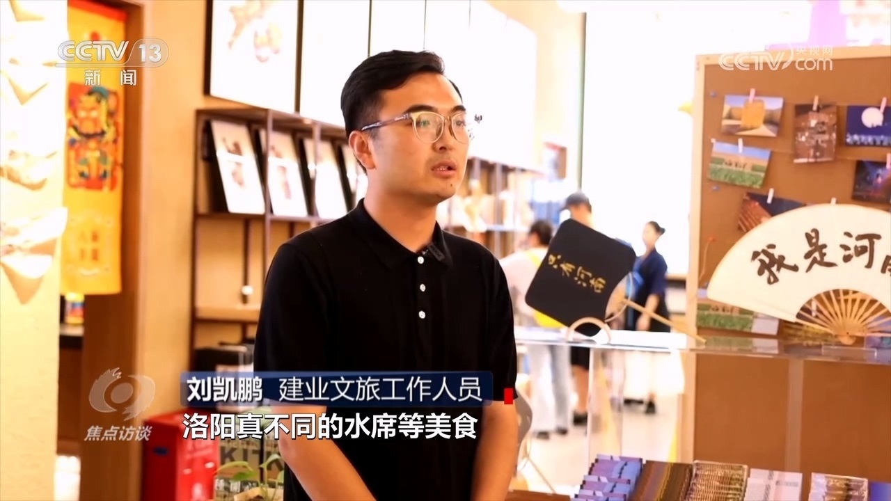 建業(yè)文旅工作人員劉凱鵬:“這個暑期的省外游客占比已經(jīng)超過六成,我們也深度挖掘了當?shù)匚幕头沁z文化,游客可以通過拓印一張木板年畫、手做一副蒲扇,來感受非遺文化的記憶之美,同時,各種各樣的河南特色小吃、洛陽真不同的水席等美食,讓游客除了戲劇以外,全方位沉浸在河南文化的熏陶當中?!?/p>