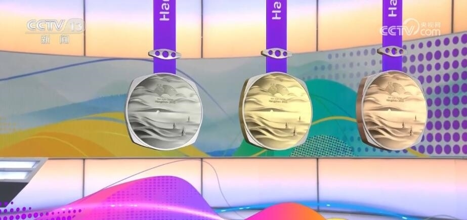 杭州亞運會獎牌名為“湖山”?!昂健睂⒘间疚幕姆叫斡耒蛨A形的獎章融為一體,正面用凸出的線條勾勒出“三面云山一面城”的杭城畫卷,湖水漣漪,山巒起伏。獎牌上方的束扣是一個帶有倒影的三孔橋,設計取自京杭大運河最南端的拱宸橋。一塊獎牌,將杭州的三處世界文化遺產(chǎn)——良渚、西湖、大運河都融入其中。