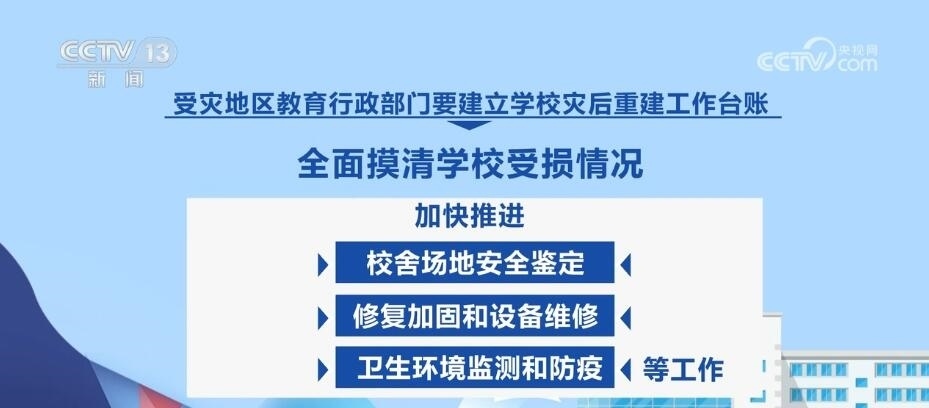 教育部強調(diào),要慎終如始做好災后恢復重建各項工作,穩(wěn)慎做好受災師生安置慰問、補償救助等工作。受災地區(qū)教育行政部門要建立學校災后重建工作臺賬,全面摸清學校受損情況,加快推進校舍場地安全鑒定、修復加固和設備維修、衛(wèi)生環(huán)境監(jiān)測和防疫等工作。確實在開學前不能完成災后重建的,要立足實際采取臨時轉(zhuǎn)移就學等舉措,全力保障正常開學。各地各校要一體推進防汛救災和校園安全治理,健全校園安全常規(guī)檢查機制,持續(xù)深入排查整治風險隱患,有效防范原發(fā)、誘發(fā)性自然災害和次生安全風險。