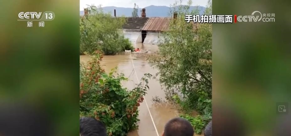孫慶波游到窗戶(hù)旁邊,逐一將初淑梅和兒子從屋里救出,兩人先后扶著輪胎,在院外人員的合力拉拽下成功獲救。