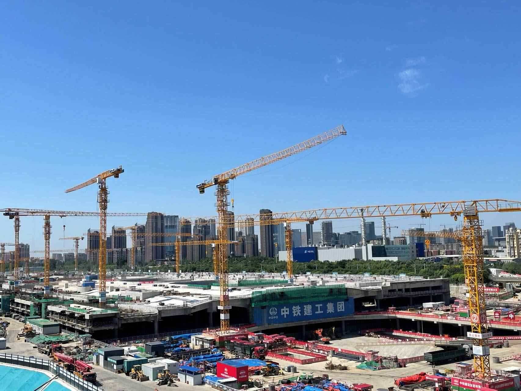 23日,位于北京市通州區(qū)的北京城市副中心站綜合交通樞紐工程建設現(xiàn)場。央視網(wǎng)記者 宿黨輝 攝