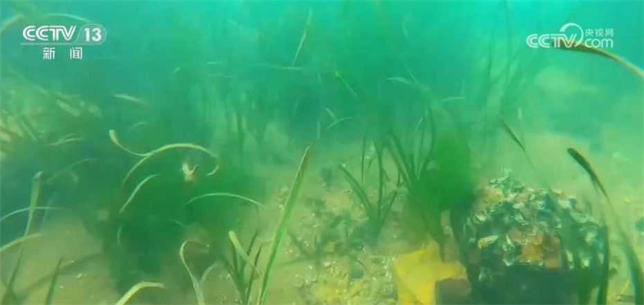 河北省近海生態(tài)修復工程技術研究中心負責人 張振海:現(xiàn)在看到的這個畫面,是我們“貝藻礁生態(tài)系統(tǒng)重構(gòu)技術”的實時景象,過去海底不是這樣的,海底整個是一片荒漠化的,在貝藻礁生態(tài)系統(tǒng)創(chuàng)新以后,海藻逐漸茂盛起來,海洋生物物種增加了十幾種,海洋生物總量提高了四十倍以上。