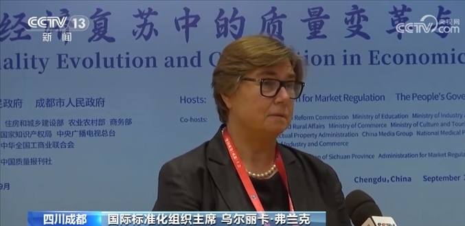 國際標(biāo)準(zhǔn)化組織主席 烏爾麗卡·弗蘭克:總體來說,中國在過去幾年的成就是非凡的,無論是在質(zhì)量提升方面、制定質(zhì)量標(biāo)準(zhǔn)方面,還是在國際貿(mào)易方面都是如此。