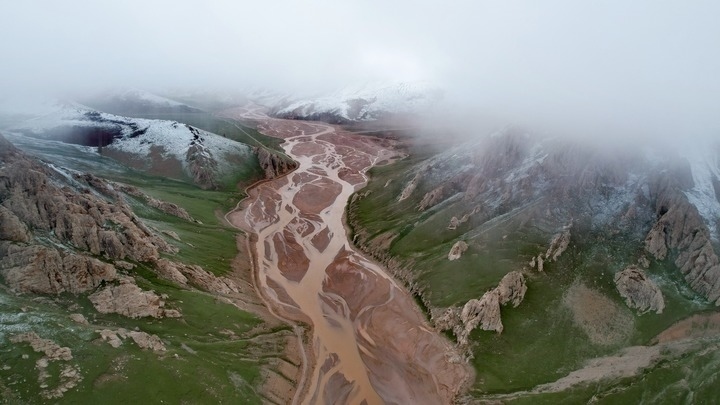 這是7月26日拍攝的通天河支流的辮狀河道(無人機(jī)照片)。新華社記者 劉詩平 攝