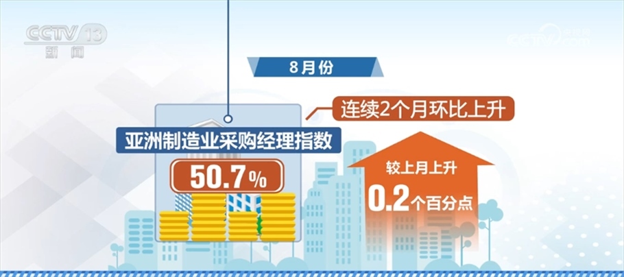8月份,亞洲制造業(yè)采購經(jīng)理指數(shù)為50.7%,較上月上升0.2個(gè)百分點(diǎn),連續(xù)2個(gè)月環(huán)比上升,顯示亞洲制造業(yè)延續(xù)平穩(wěn)增長(zhǎng)趨勢(shì)。從主要國(guó)家看,中國(guó)制造業(yè)采購經(jīng)理指數(shù)連續(xù)三個(gè)月上升,向好回升勢(shì)頭進(jìn)一步鞏固,中國(guó)制造業(yè)呈現(xiàn)持續(xù)穩(wěn)定恢復(fù)趨勢(shì),為亞洲制造業(yè)的平穩(wěn)增長(zhǎng)提供重要支撐。