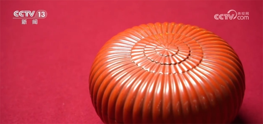 總臺記者 楊雪:與多穆壺一樣,很多文物都是逐漸從生活用品演化成為藝術(shù)品的。像我們眼前看到的這一款清乾隆款朱漆菊瓣盒就是其中之一。它本來是盛放像干果、小點心等這些小件物品的盒子,在不斷使用的過程中,逐漸演化成為了宮廷藝術(shù)品。