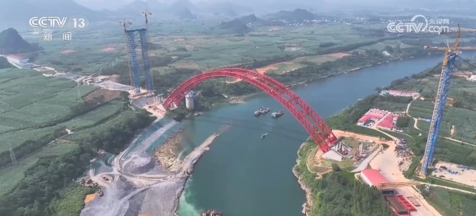 央視網(wǎng)消息:10月1日,廣西來賓西紅水河特大橋拱肋順利合龍,這標(biāo)志著項(xiàng)目建設(shè)取得突破性進(jìn)展,為下一步橋面鋪裝等工作打下堅實(shí)基礎(chǔ)。