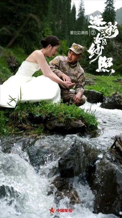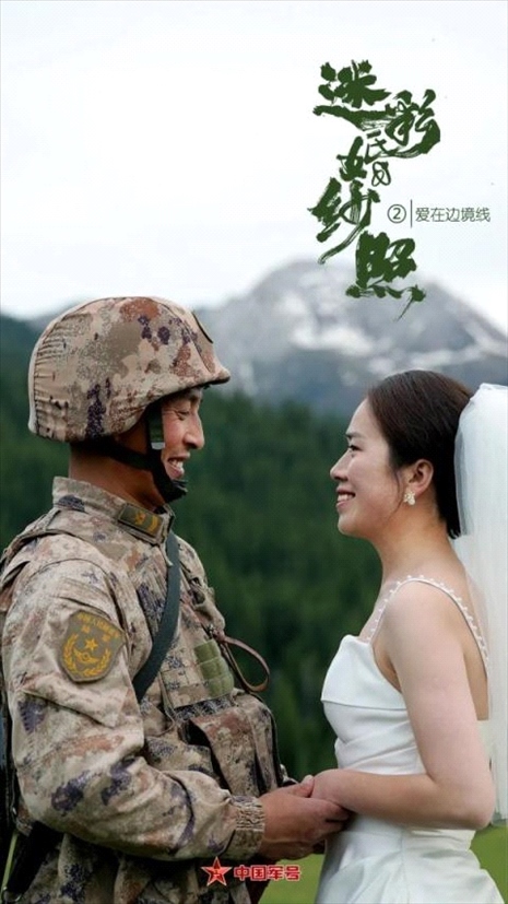 陳健駐守在新疆軍區(qū)紅海溝邊防連,與妻子丁佳結(jié)婚8年,聚少離多,一直遺憾沒有拍過(guò)婚紗照。妻子丁佳決定給他一個(gè)驚喜——帶上婚紗,跨越幾千公里,在他巡邏的路上與他“偶遇”!迷彩婚紗照又有“天花板”了!