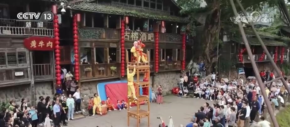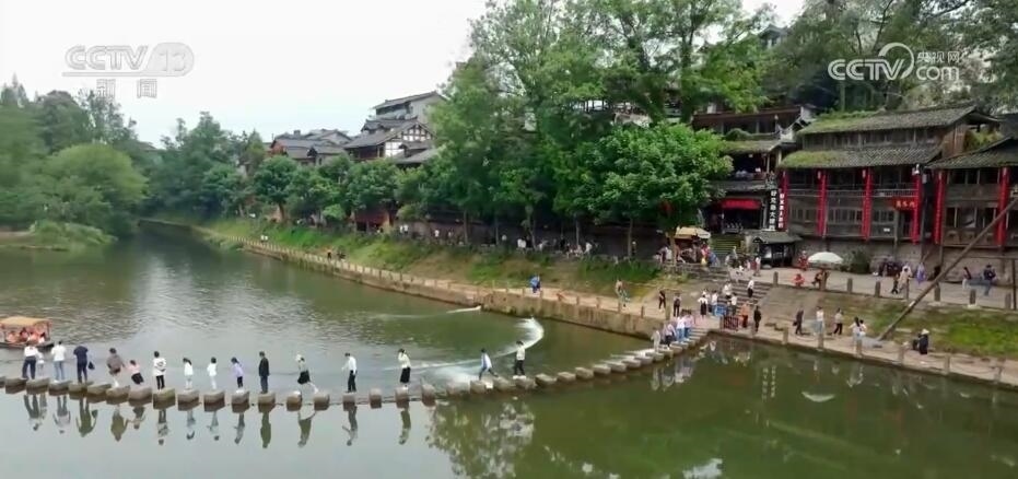 在四川洪雅縣的柳江古鎮(zhèn),當(dāng)?shù)赝瞥鰧?shí)景演出、經(jīng)典誦讀、非遺巡演等多項(xiàng)活動(dòng)。游客們漫步于山水如畫的詩(shī)意古鎮(zhèn)中,觀看水上實(shí)景演出,感受非遺民俗魅力,歡度假期。