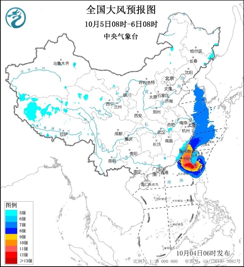 10月5日08時(shí)至6日08時(shí),東海西南部海域、臺(tái)灣海峽、臺(tái)灣以東洋面、巴士海峽、南海東北部偏北海域?qū)⒂?~9級(jí)、陣風(fēng)10~11級(jí)的大風(fēng),其中臺(tái)灣海峽、臺(tái)灣以東洋面、巴士海峽的部分海域風(fēng)力可達(dá)10~12級(jí)、陣風(fēng)13~14級(jí),臺(tái)風(fēng)“小犬”中心經(jīng)過(guò)的附近海域風(fēng)力可達(dá)13~14級(jí)、陣風(fēng)15~16級(jí),黃海東部海域、東海西北部海域?qū)⒂?級(jí)、陣風(fēng)8級(jí)的大風(fēng);西藏西部將有5~6級(jí)、陣風(fēng)7級(jí)的大風(fēng),浙江沿海、福建沿海、臺(tái)灣島將有6~8級(jí)、陣風(fēng)9級(jí)的大風(fēng)。