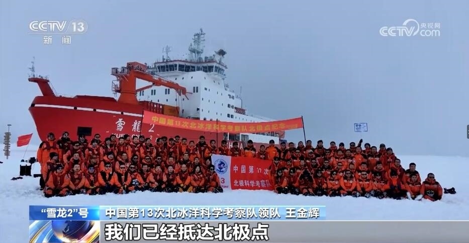 中國第13次北冰洋科學(xué)考察隊領(lǐng)隊 王金輝:中國第13次北冰洋科學(xué)考察隊隊員們,很高興地告訴大家,我們已經(jīng)抵達(dá)北極點。