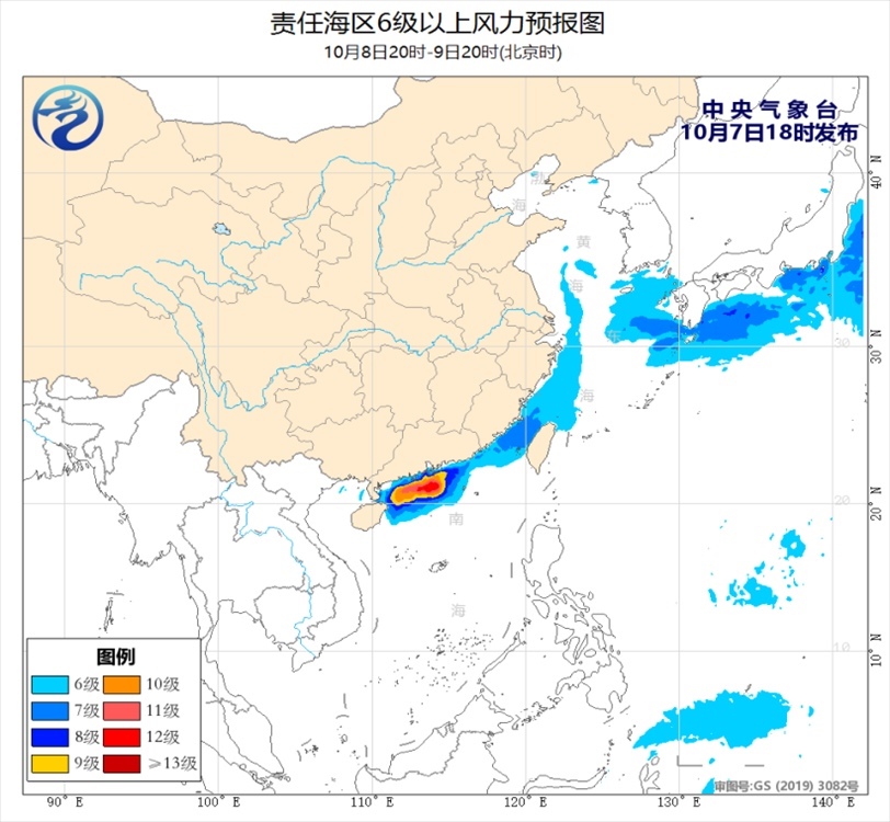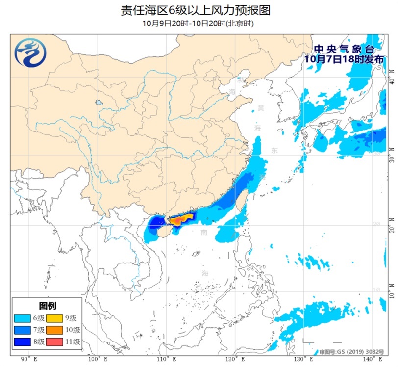 7日夜間至8日白天,廣東中部和東部沿海、粵閩交界沿海及渤海北部的部分海域將有8~10級的雷暴大風。