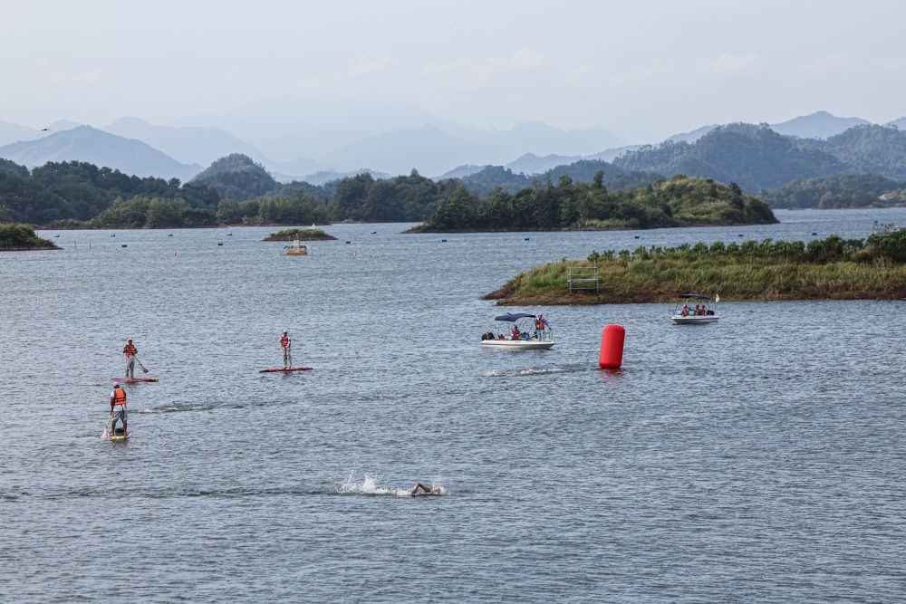 杭州主城區(qū)西南方約200公里,淳安縣千島湖秀水畔的界首鄉(xiāng),水域廣闊、港灣曲折,沿線騎行、徒步的游客絡(luò)繹不絕。杭州亞運(yùn)會(huì)自行車、鐵人三項(xiàng)等比賽在這里如火如荼地展開。